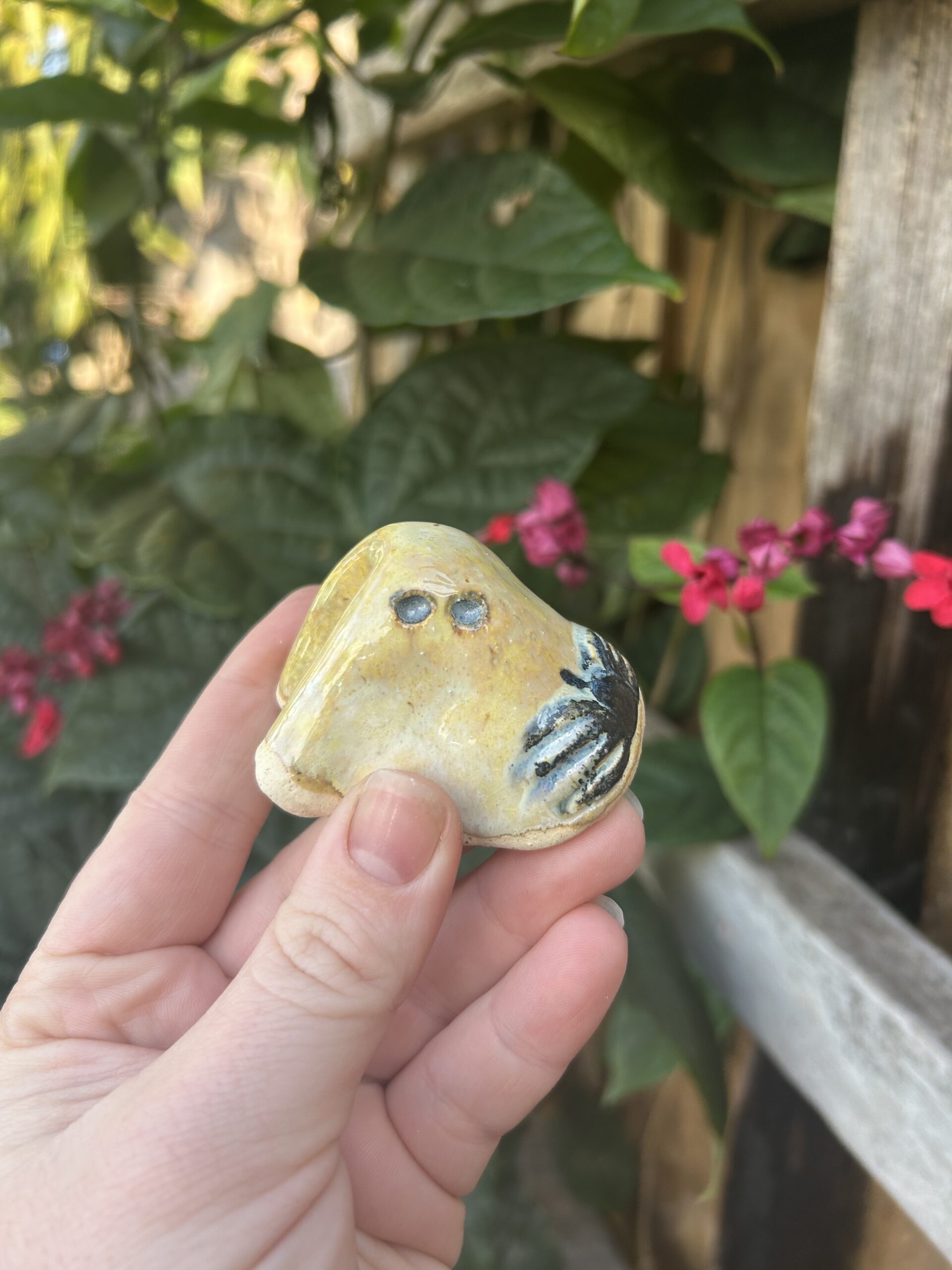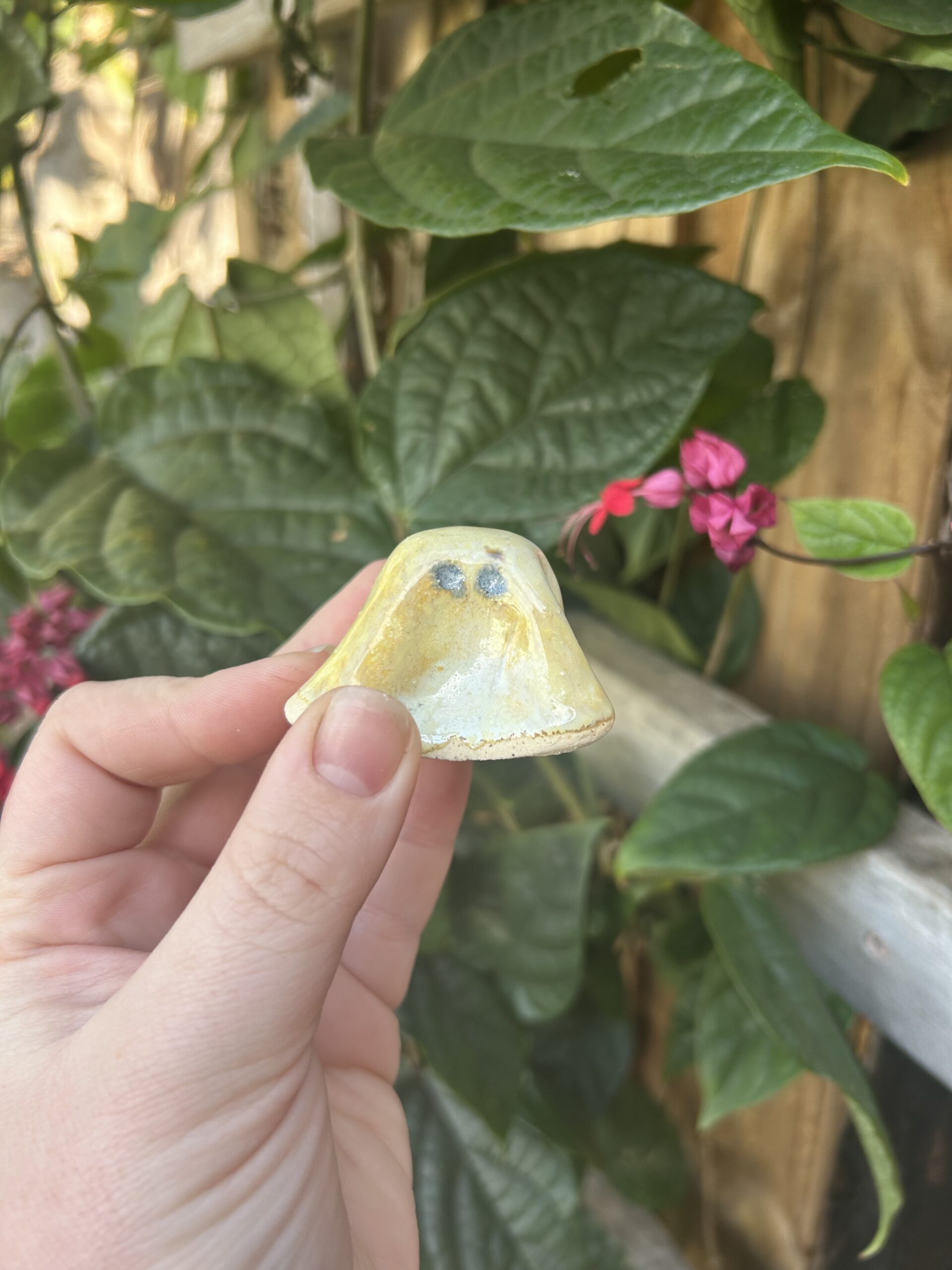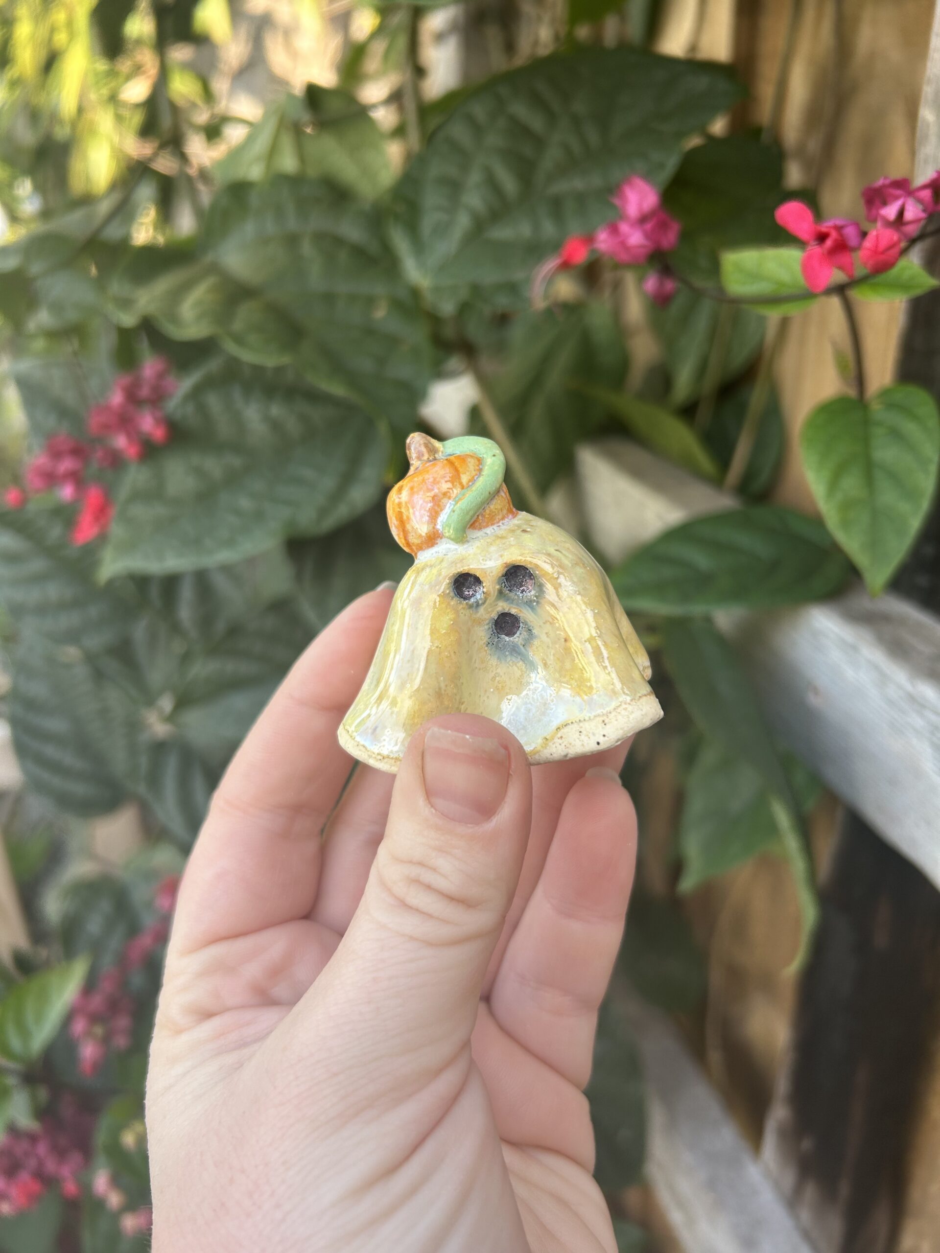 This stoneware jumbo ghost is looking to spook a new haunt! They are all handmade, and hand painted so each one features its own personality.